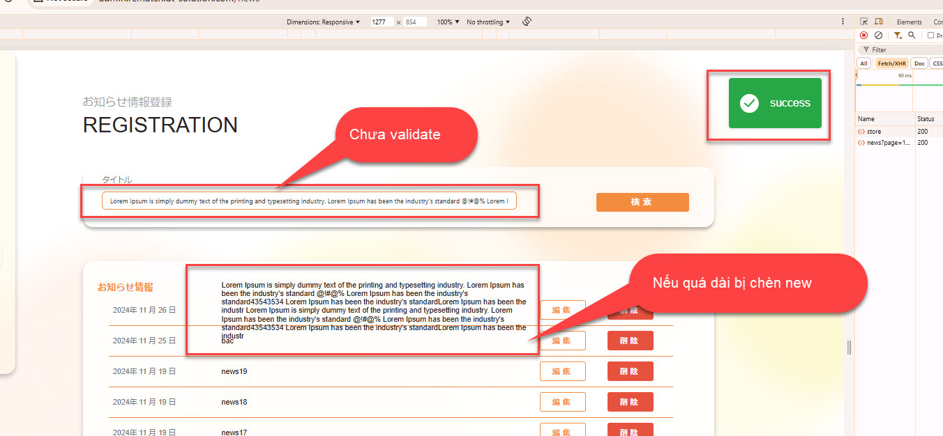 [Admin] [List News] Tạo mới/edit new chưa validate trường textbox, text dài bị chèn new