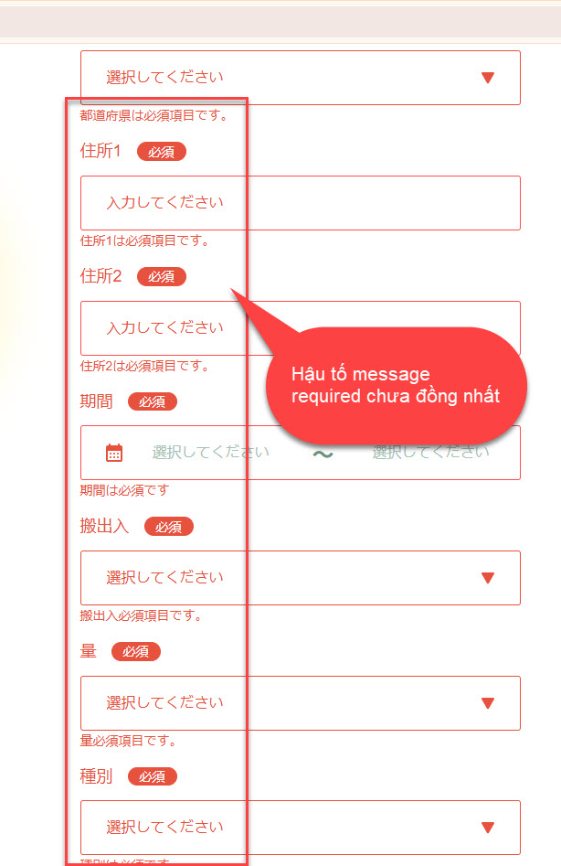 2. Message required hậu tố đồng nhất は必須です (Tham khảo admin site)