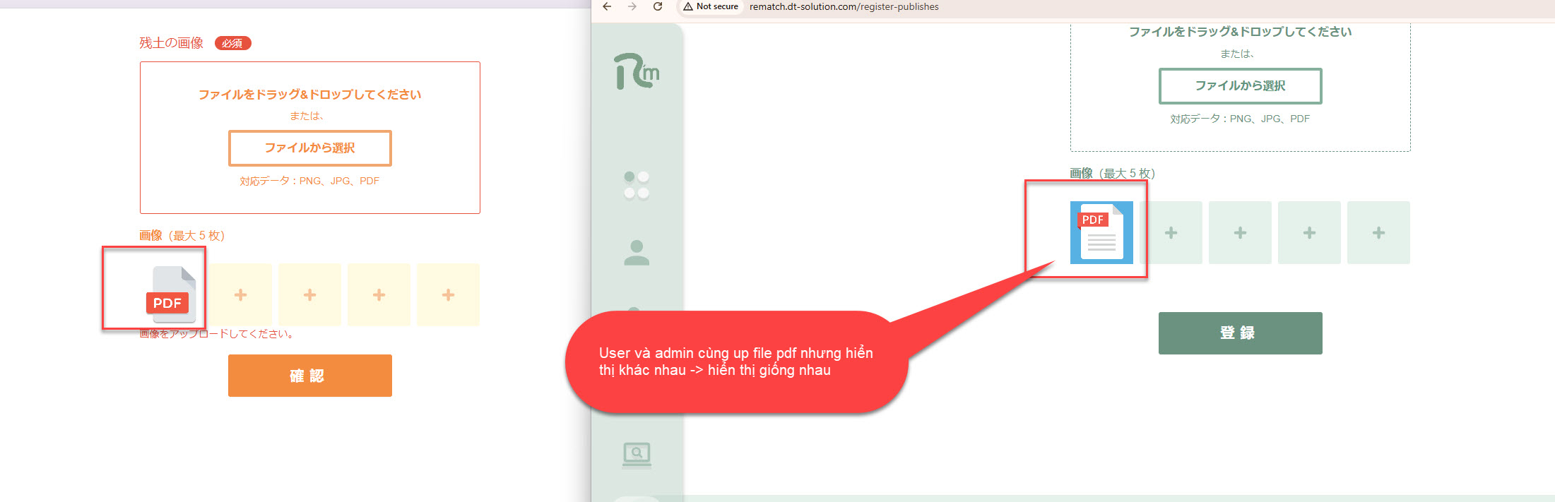 3. Up file pdf user và admin hiển thị ảnh không đồng nhất