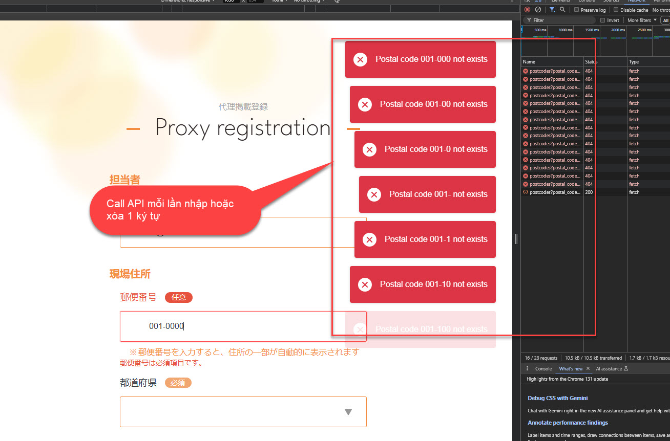 [Admin] [Publish] [Create] Trường post_code call API mỗi lần nhập hoặc xóa 1 ký tự
