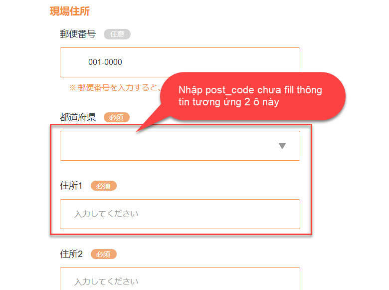 Fill thông tin tương ứng 2 ô bên dưới mỗi khi thay đổi post_code