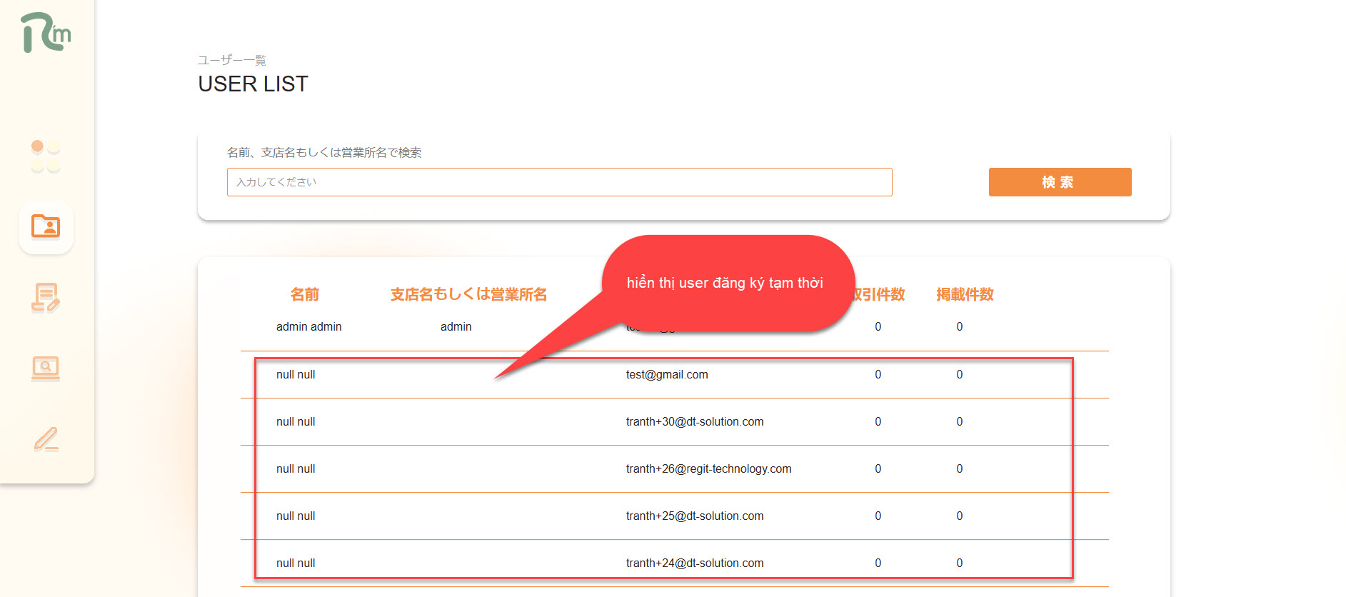 [Admin] [User] Màn list hiển thị user tạm thời