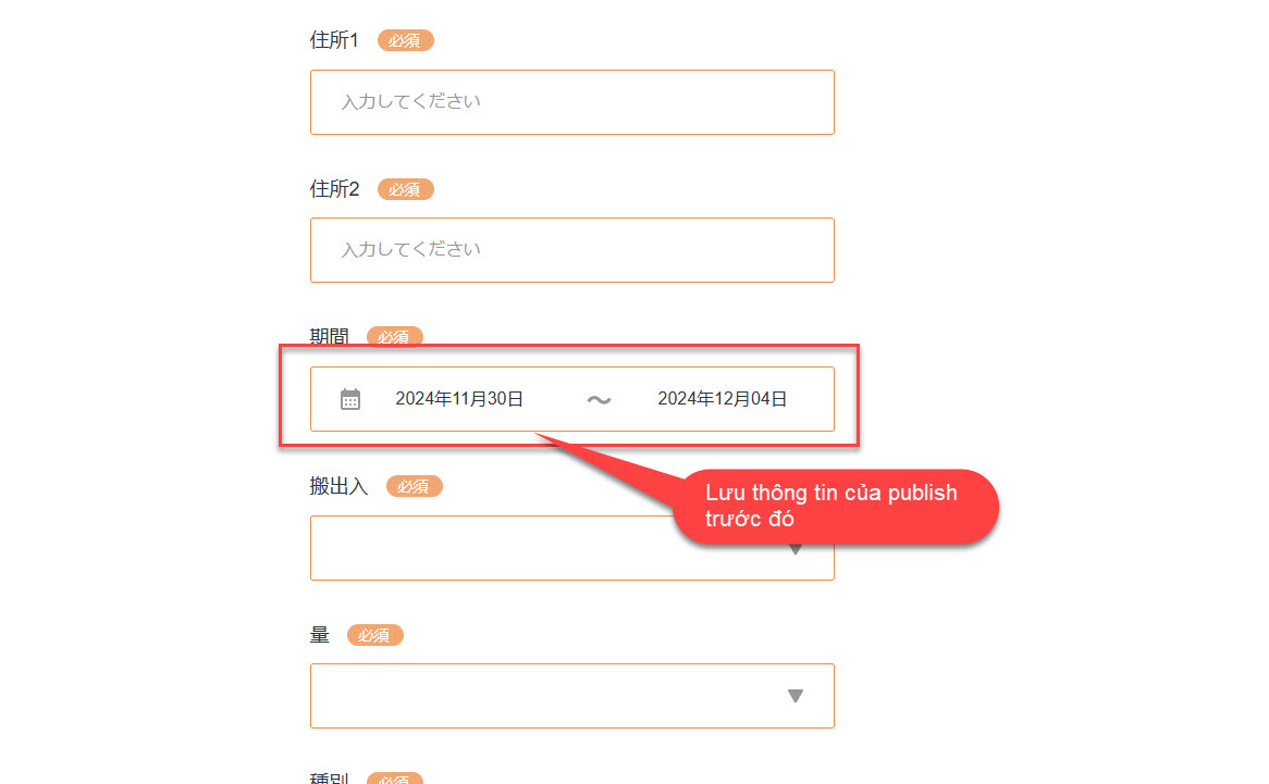 3. Tại màn tạo mới publish vẫn lưu trường thời gian của publish đã tạo trước đó