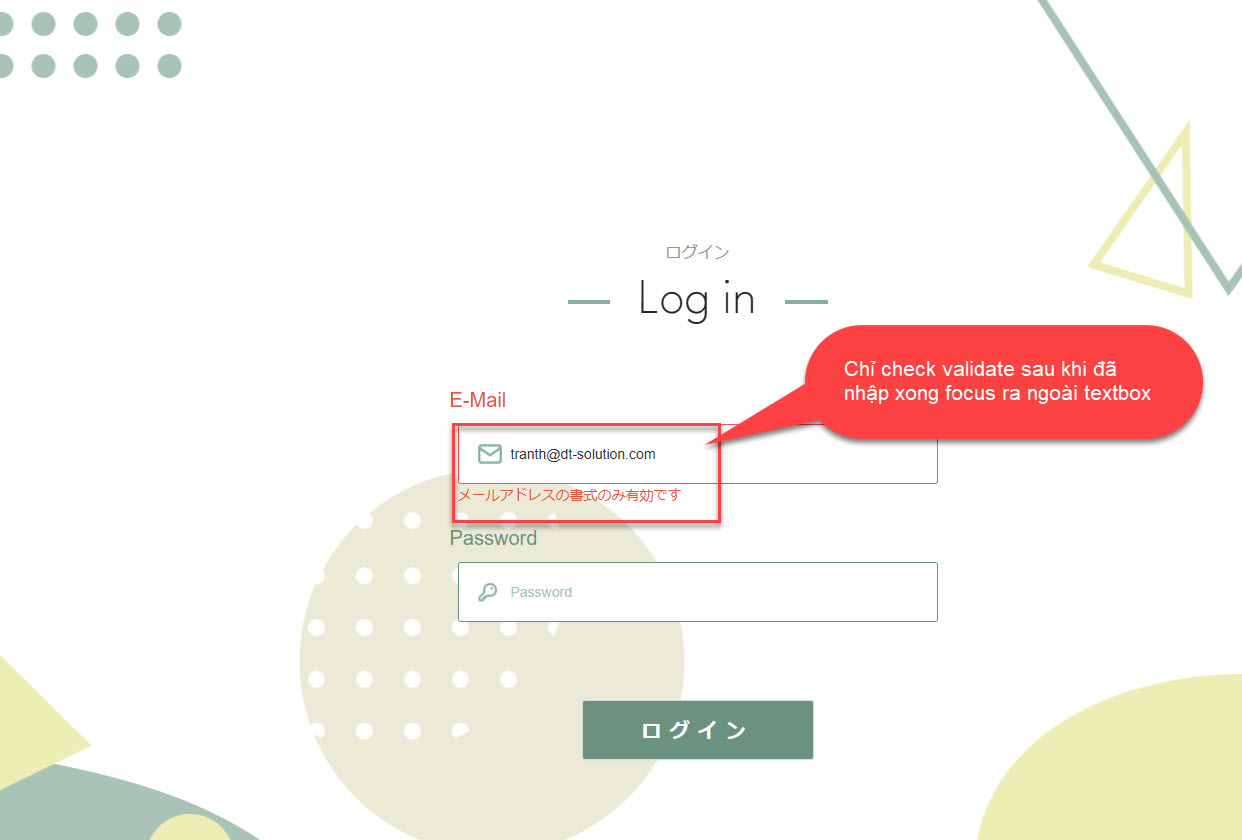 [User] [Login] Trường mail user chưa nhập xong đã hiển thị lỗi validate