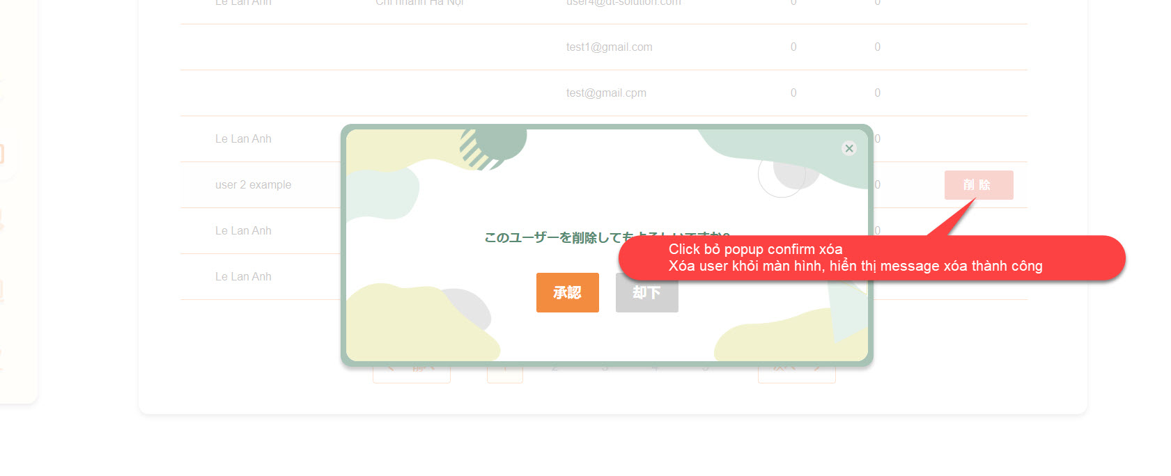 [Admin] [User] Màn list user click button xóa hiển thị popup confirm