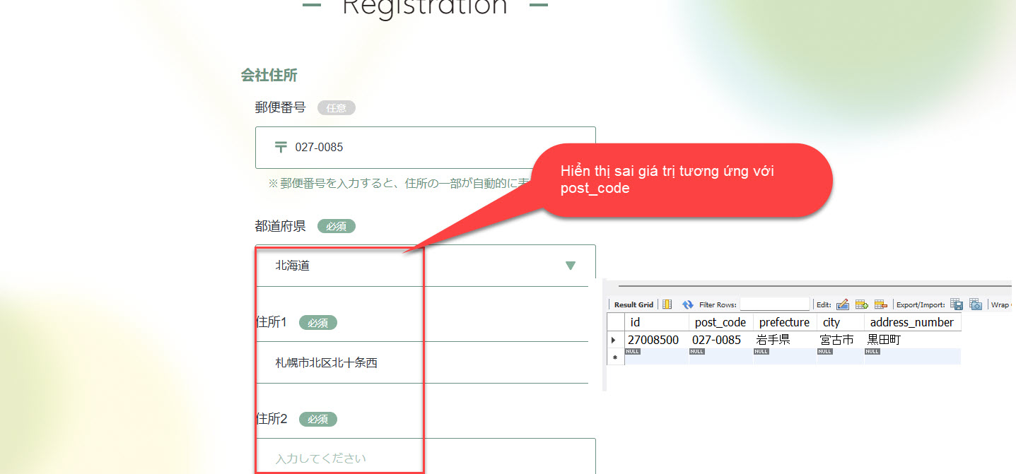 Fill sai thông tin địa chỉ tương ứng với post_code