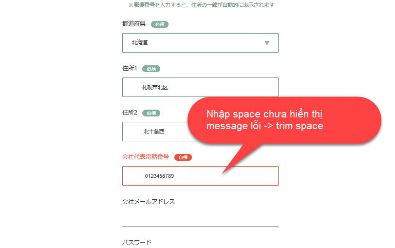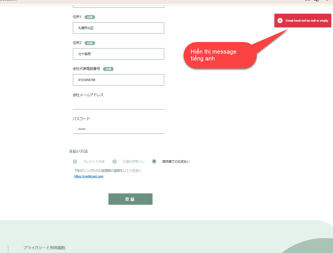 Update password <6 ký tự hiển thị message パスワードは6文字以上で入力してください。