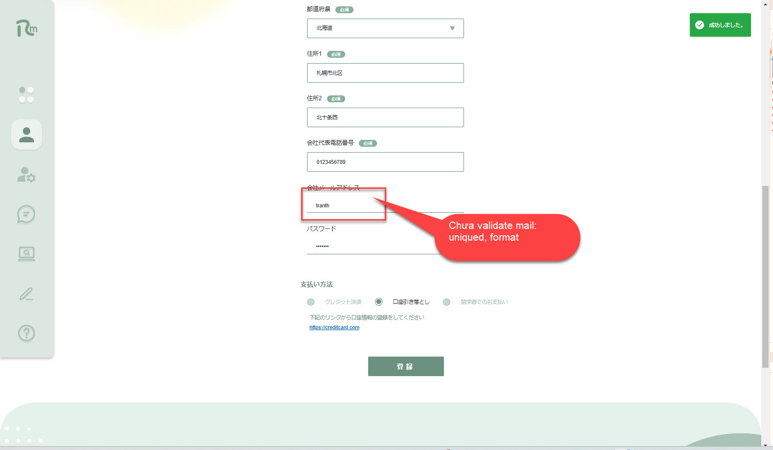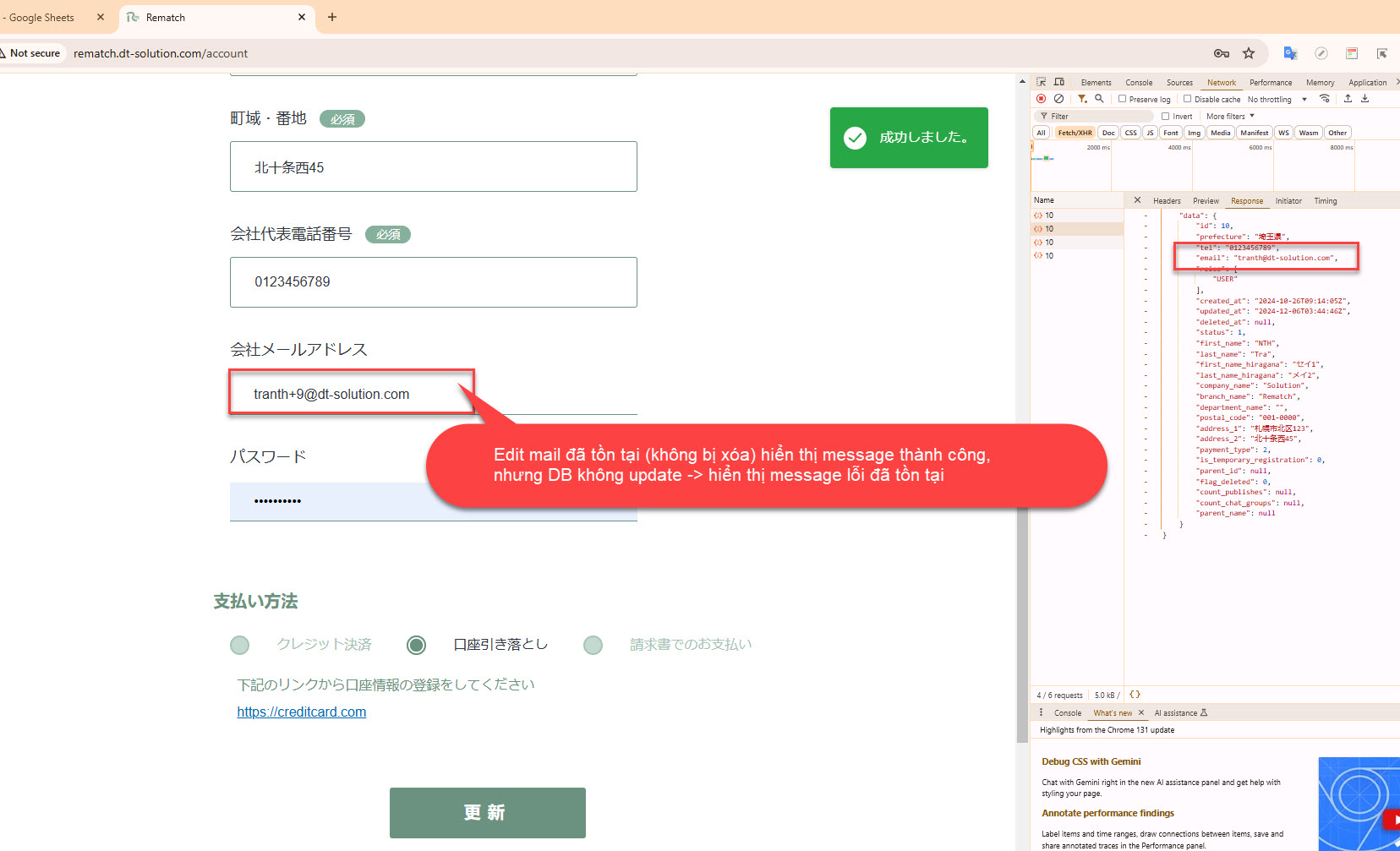 Update mail đã tồn tại hiển thị message thành công nhưng DB không update