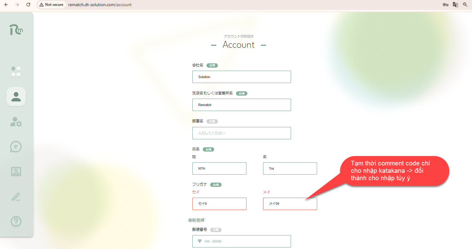 Tạm thời comment code check trường フリガナ chỉ cho nhập katakana -> cho nhập bất ký