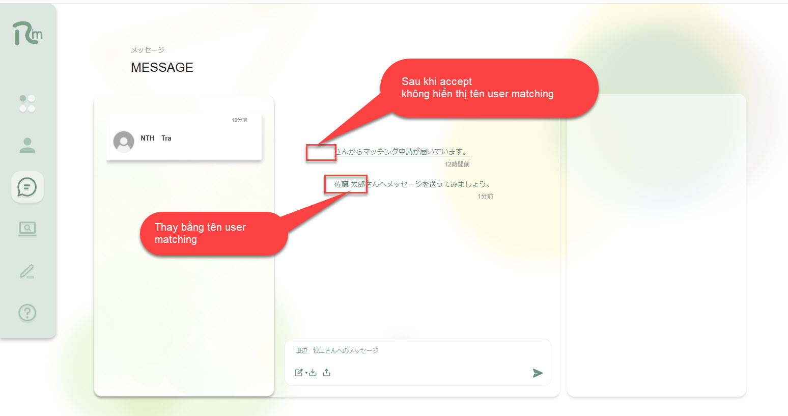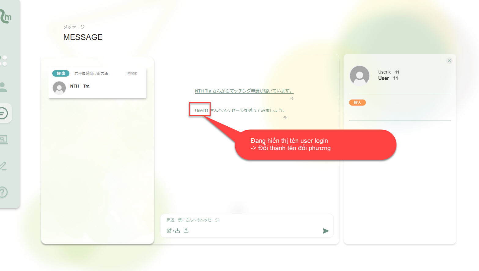 Message さんへメッセージを送ってみましょう。 hiển thị sai tên user matching