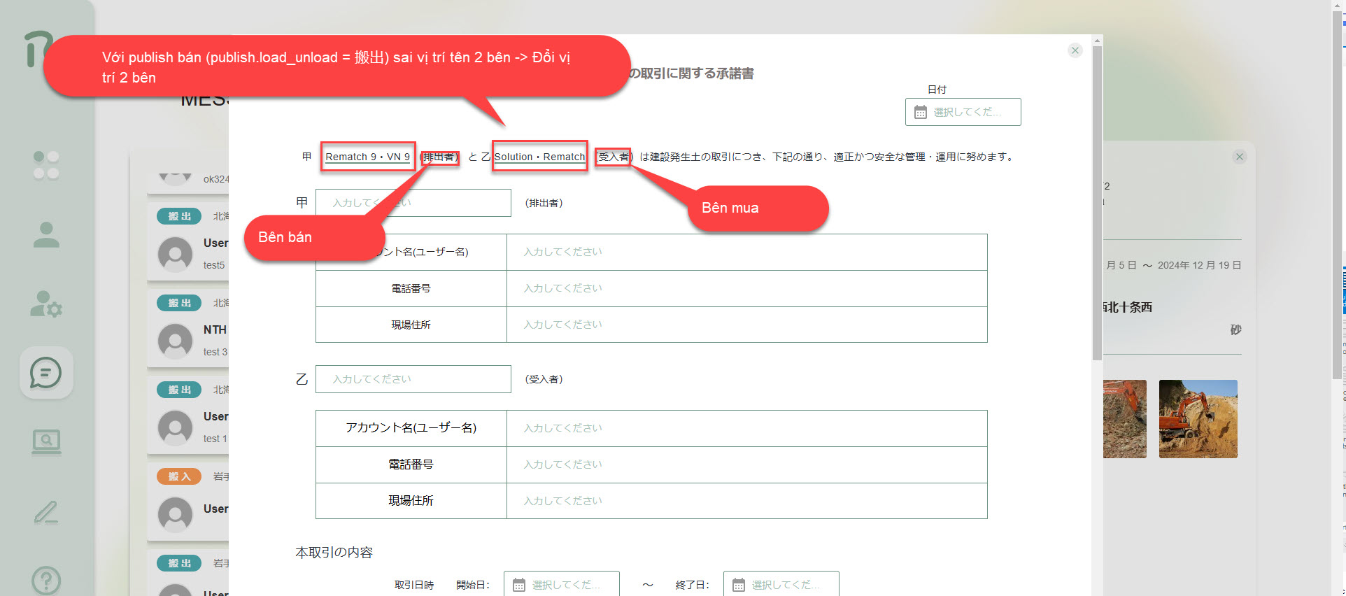 [Message] Create/edit consen_form/certificate với publish có load_unload = 搬出 sai vị tên 2 bên