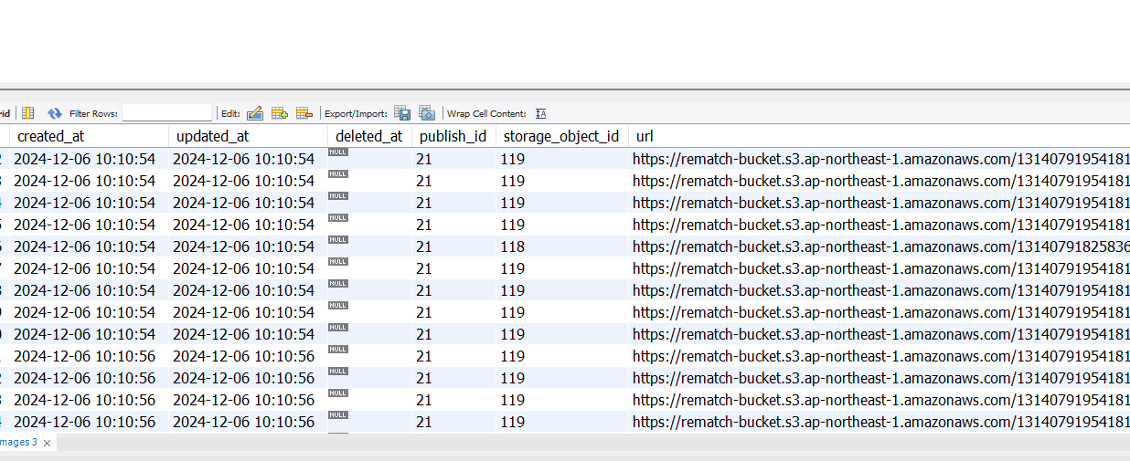 2. Call API update trường publish_images.publish_id, publish_images.storage_object_id hiển thị message thành công