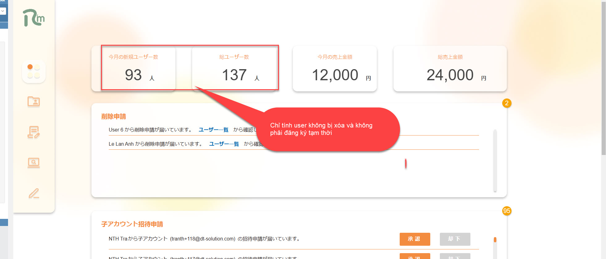 - Tính user không bị xóa và không phải đăng ký tạm thời