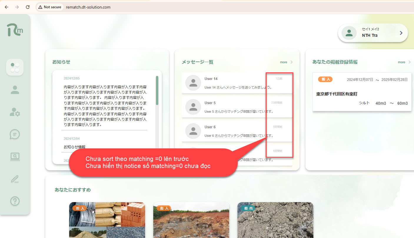 [User] [Home] Mục message sắp xếp sai, chưa hiển thị số chat_group chờ matching