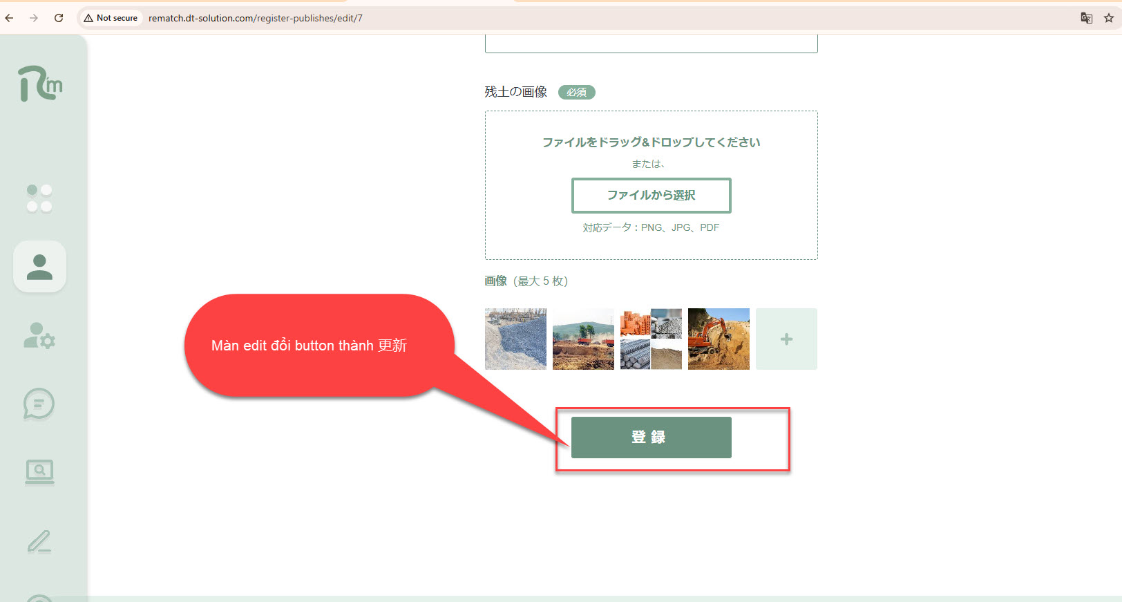2. Màn edit đổi button thành 更新