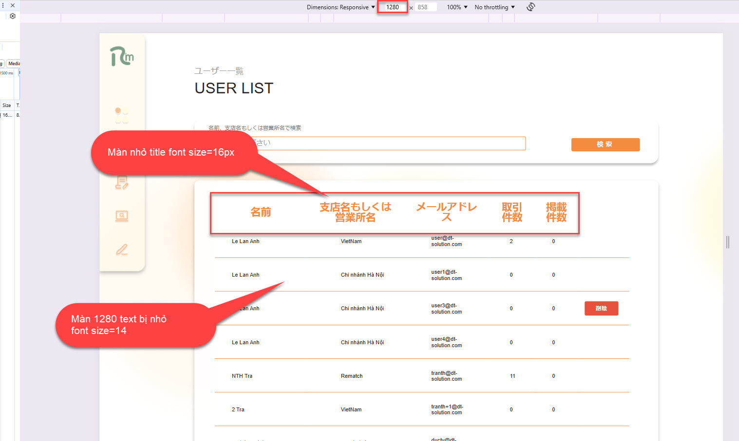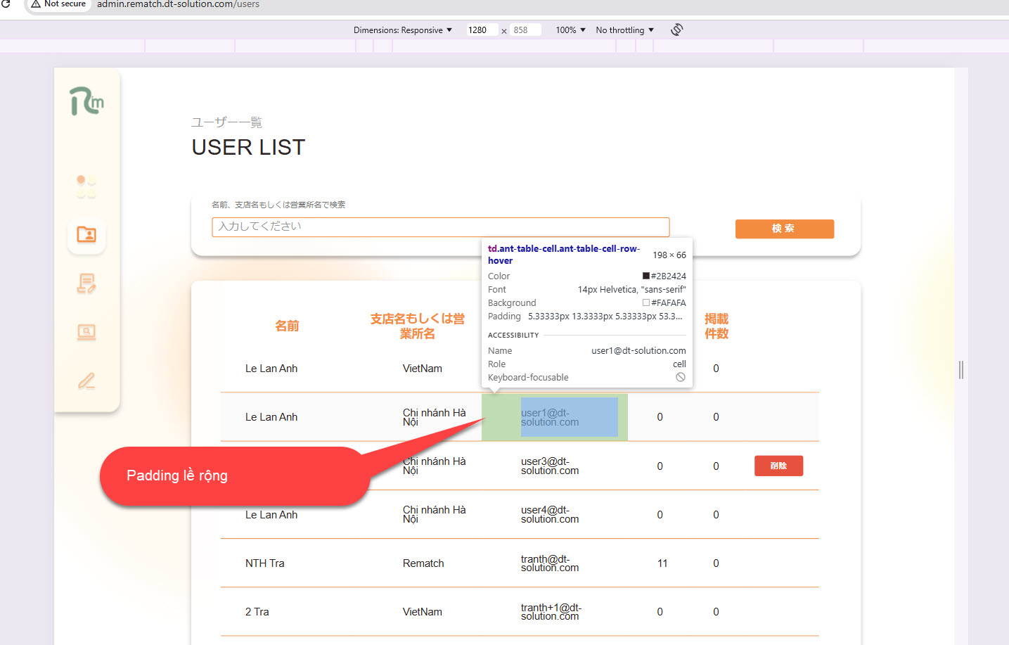 [Admin] [User] Màn list user lỗi giao diện