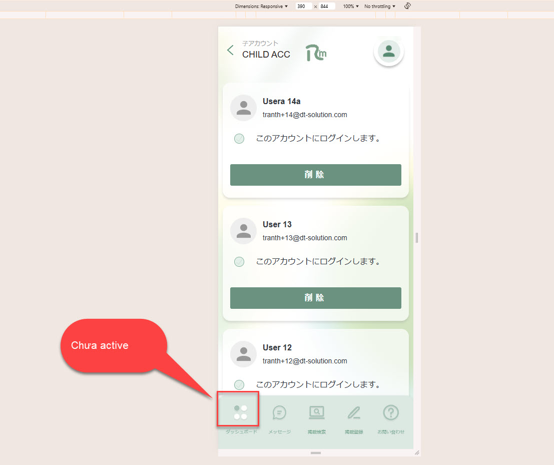 3. Màn list child account chưa active menu home, phân trang khác DS