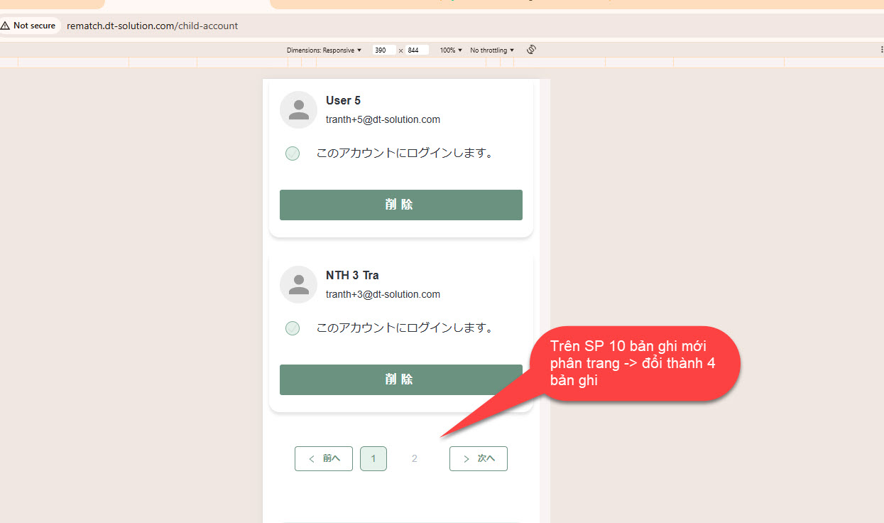 3.Màn list child account active menu home, phân trang 4 bản ghi như DS