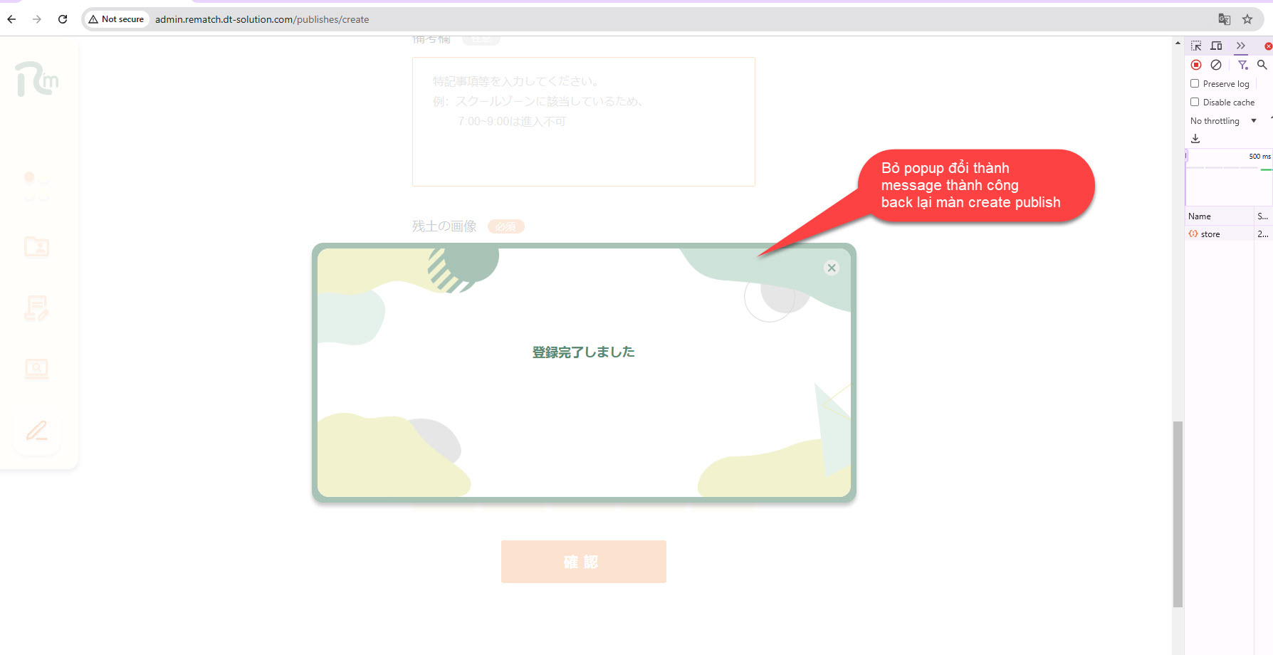 [Admin] [Publish] [Create] Create publish thành công hiển thị popup thành công