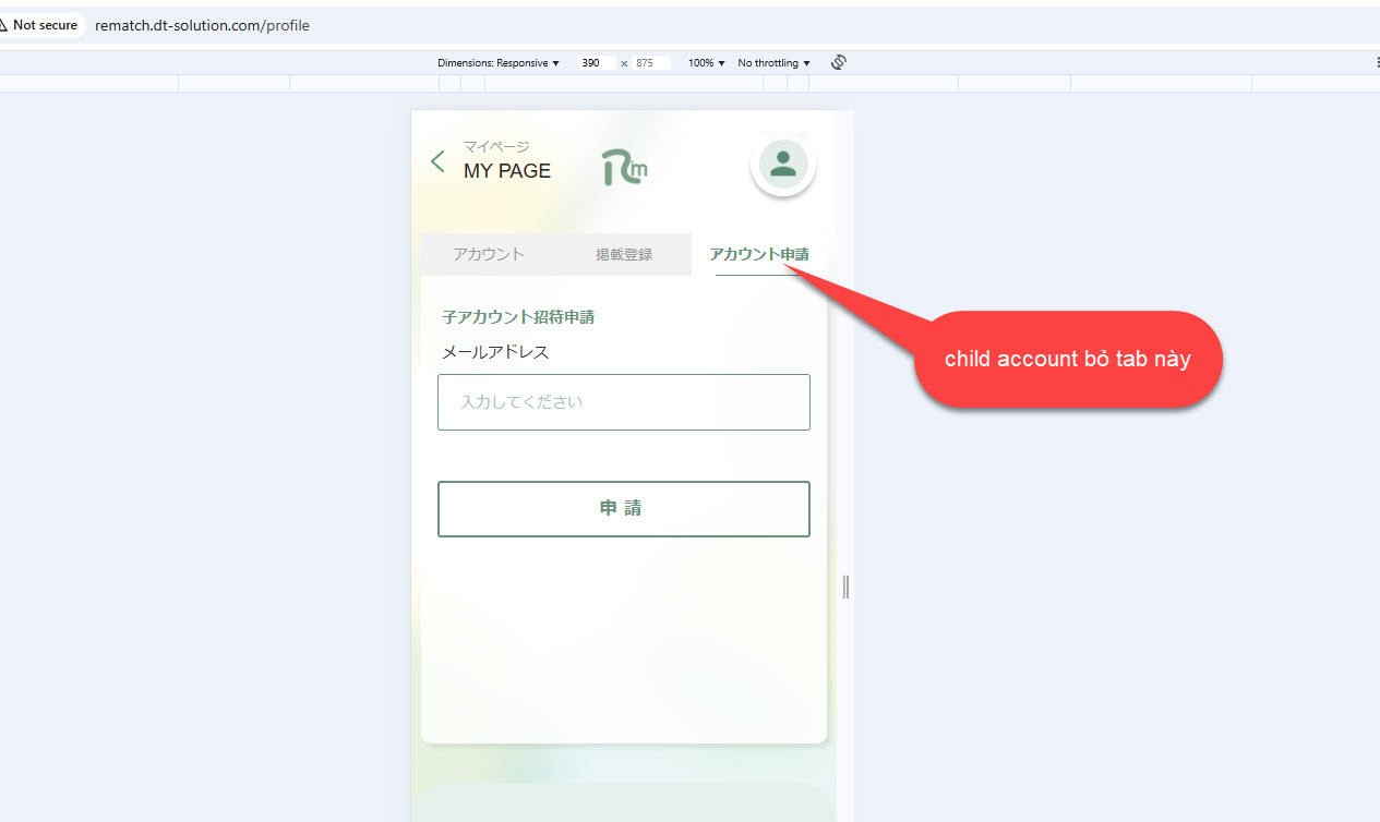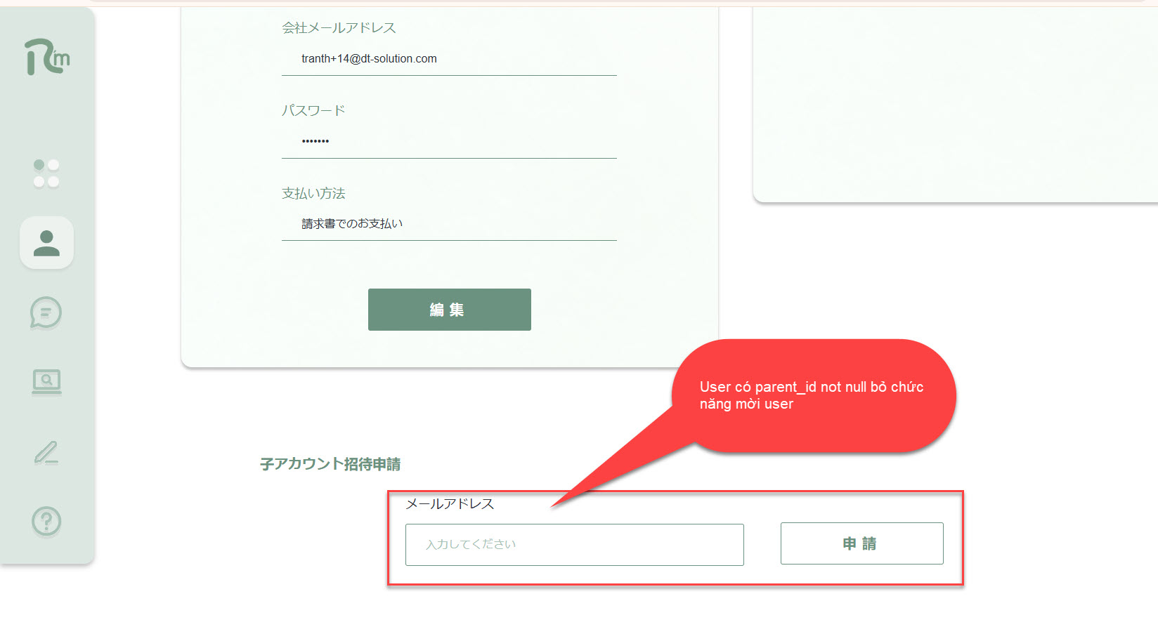 2. User có parent_id not null, màn mypage bỏ mục mời user (SP,PC)