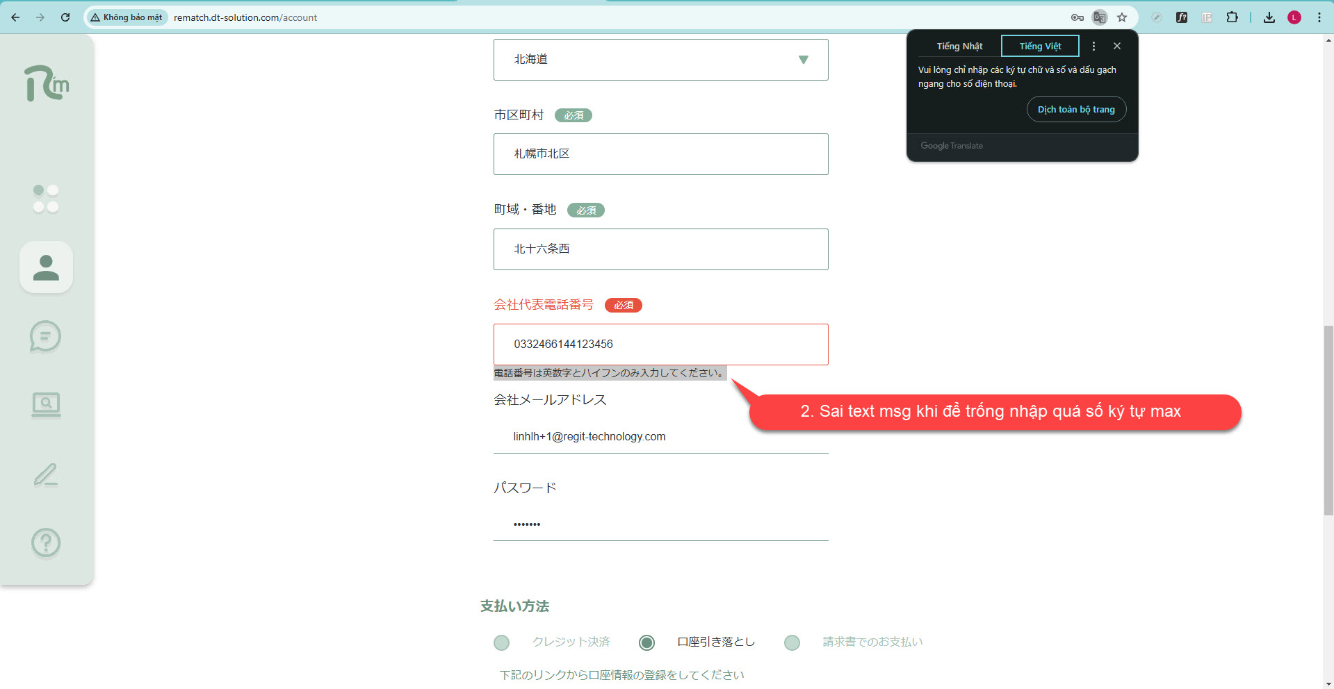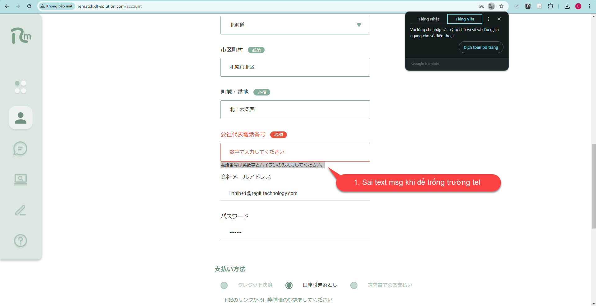 ◆ Môi trường test: http://rematch.dt-solution.com/account