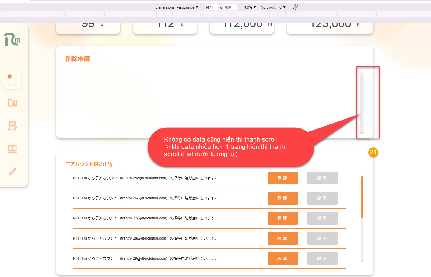2. 2 mục list không có data vẫn hiển thị thanh scroll
