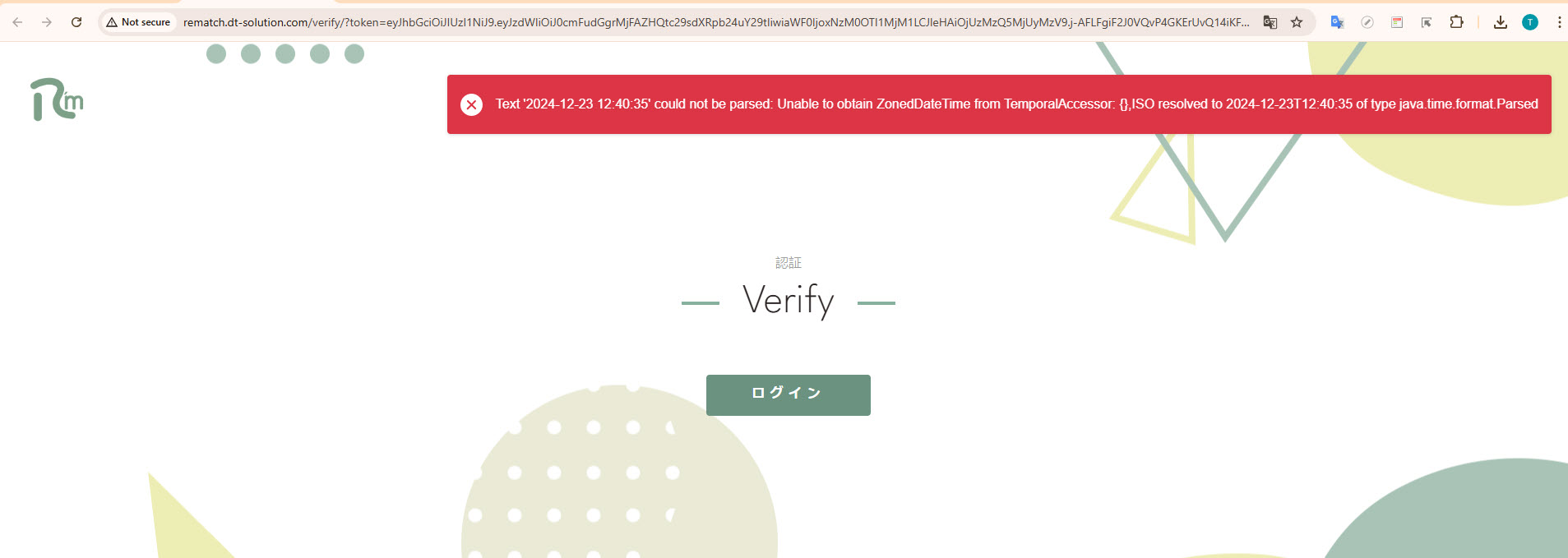 1. User click link quá hạn hiển thị message lỗi URL無効