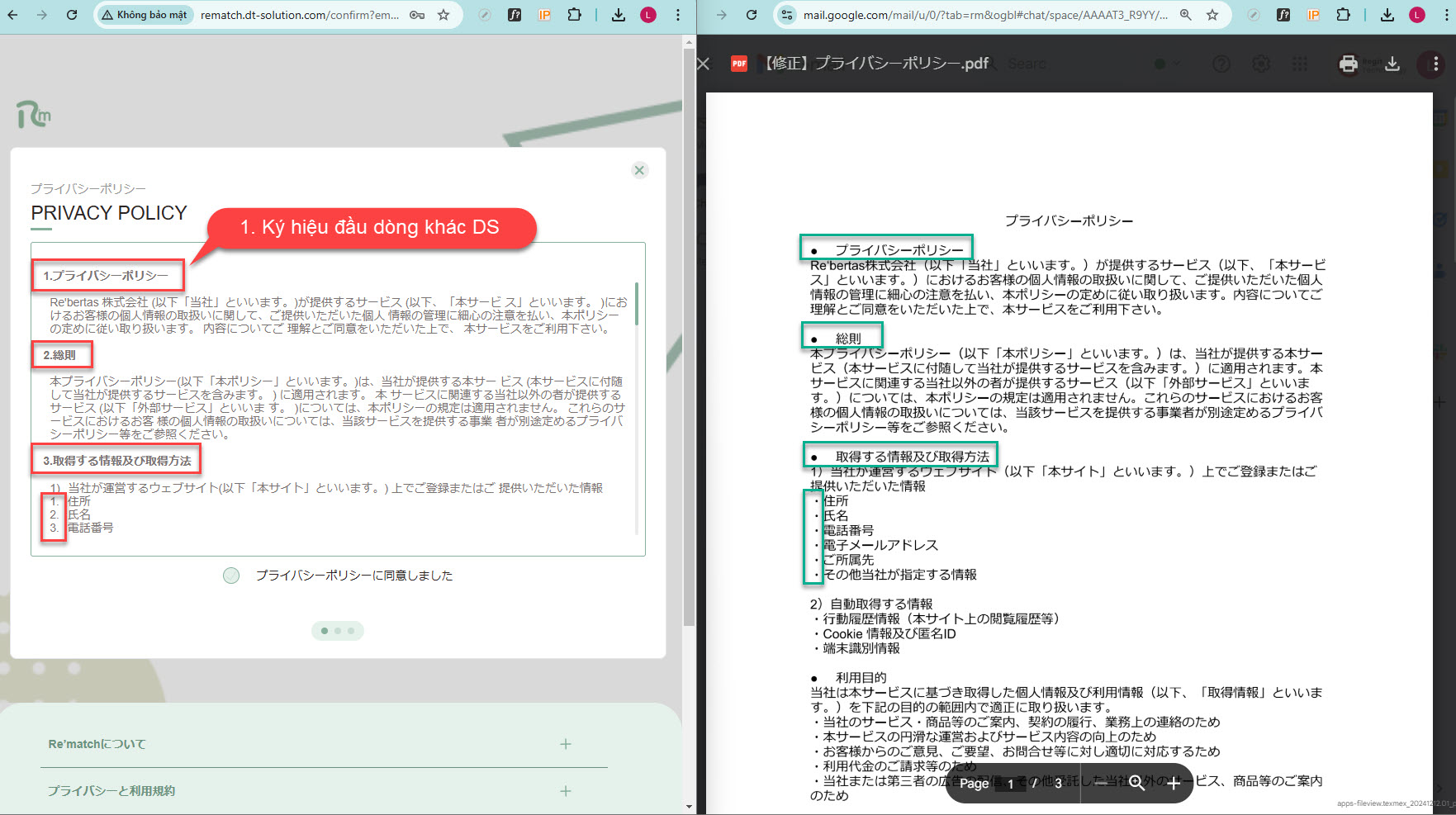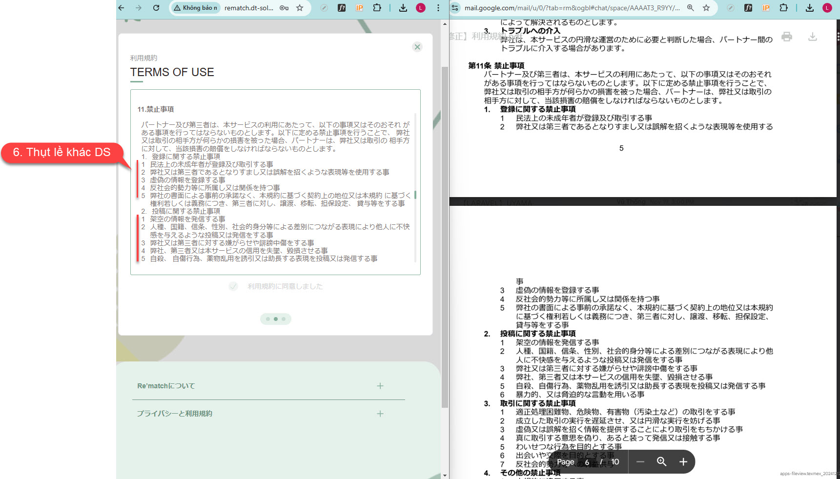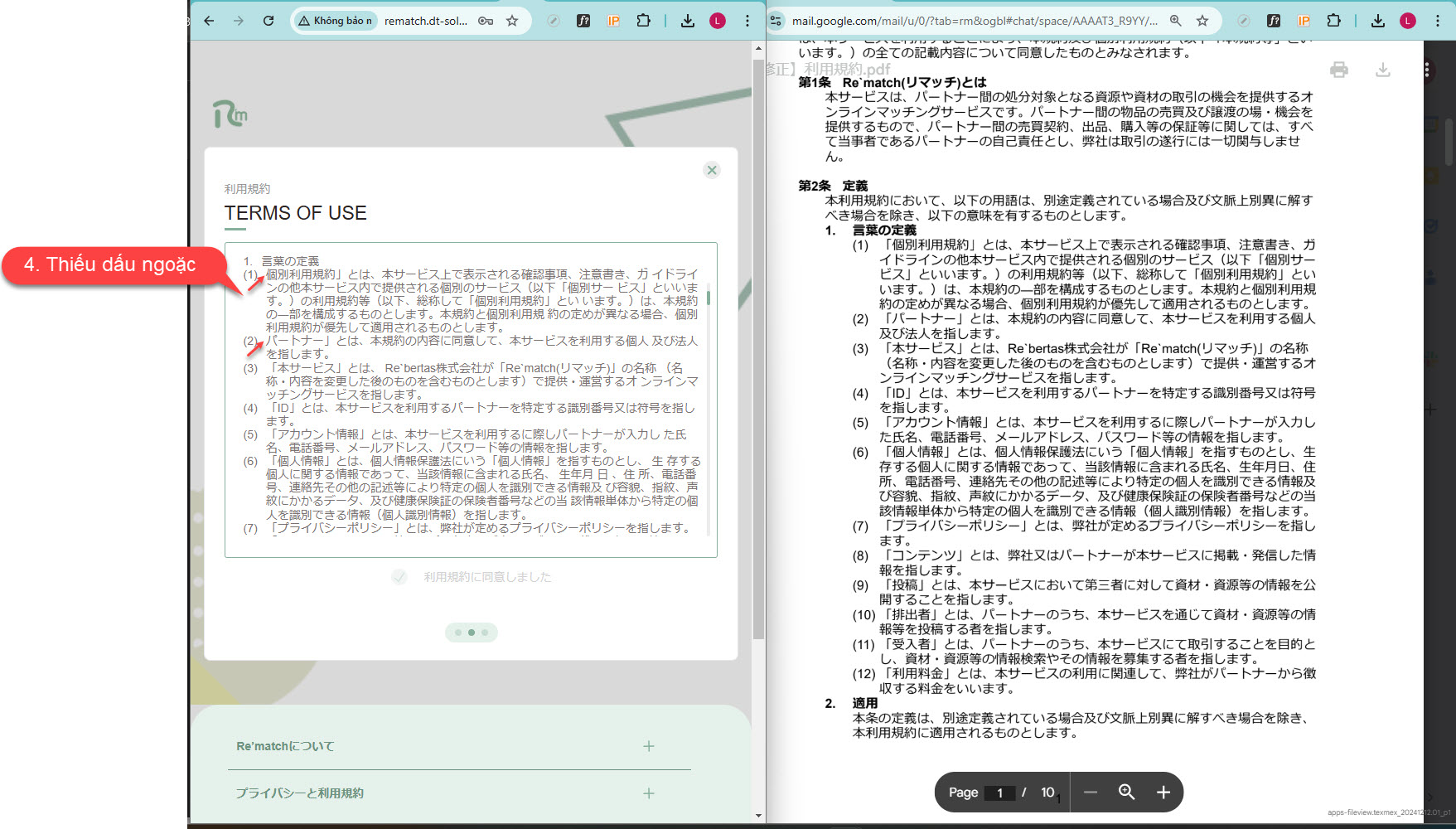 4. Kiểm tra hiển thị các màn: Policy Privacy, Terms Of User, Antisocial Forces.