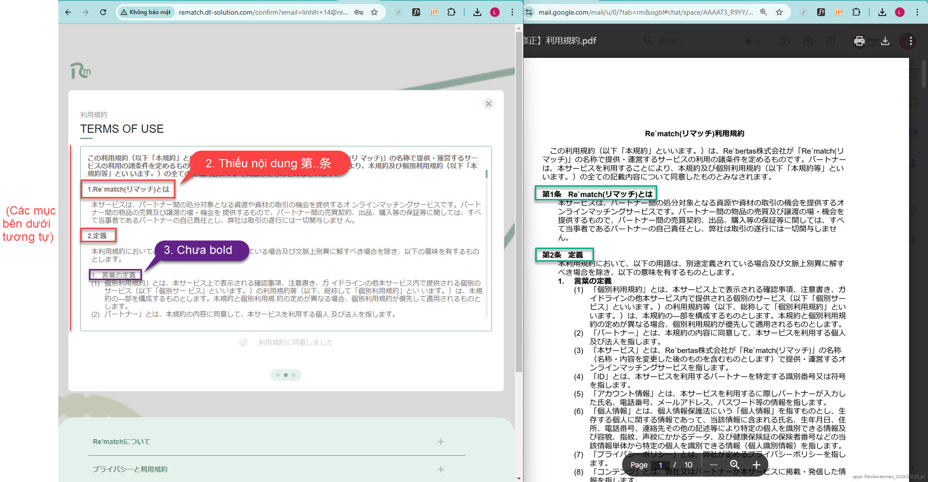 [User] [Confirm] Giao diện hiển thị khác tài liệu.
