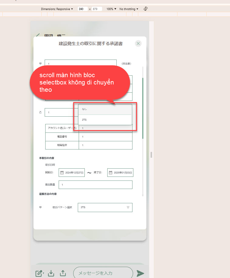 Khi scroll bloc selectbox không di chuyển theo