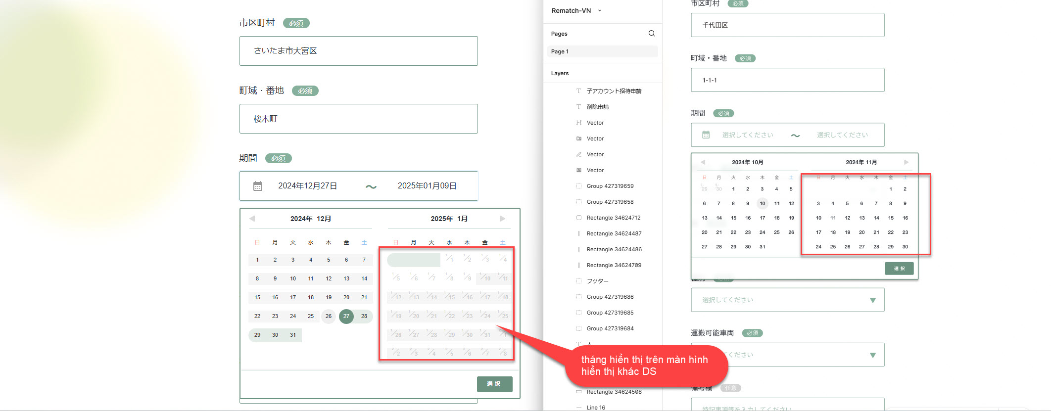 2 tháng hiển thị trên màn hình format hiển thị như DS