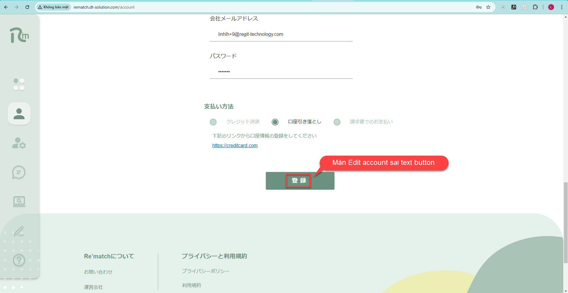 ◆ Môi trường test: http://rematch.dt-solution.com/account