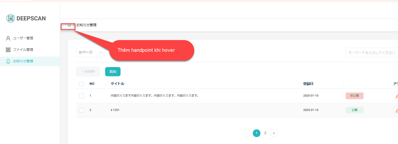 [Admin] [User] Icon home khi hover chưa có handpoint